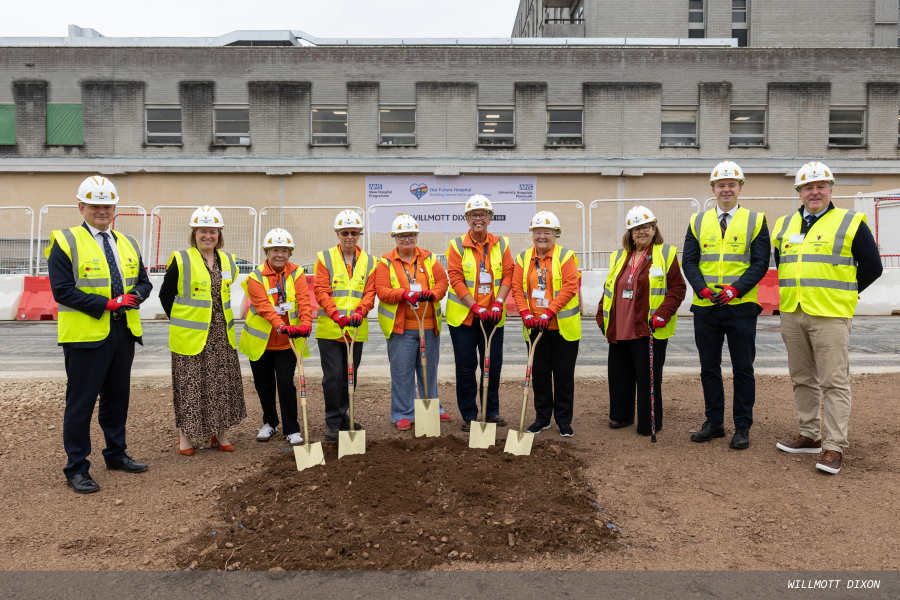 University Hospitals Plymouth NHS Trust has marked a major milestone with construction now underway on a new £140 m Emergency Care Building at Derriford Hospital.